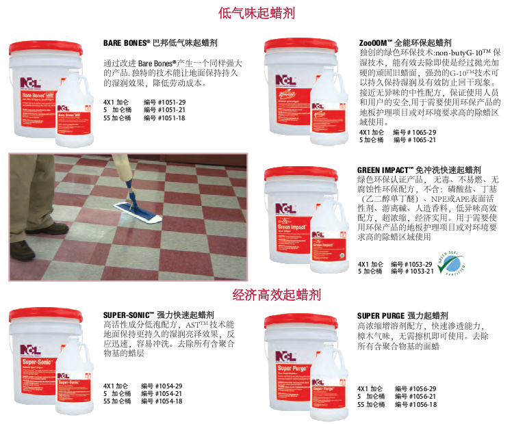 NCL致力于為我們的客戶創造地 板護理解決方案™,打造地板具 有顯著的光澤,無與倫比的耐 用性,和獨特的成本節約優勢。NCL的優質服務和產品創新是行業公認的。